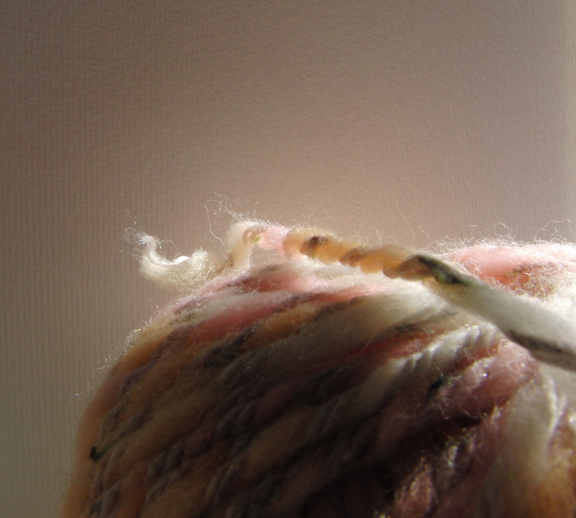 Y la abuela me explica que se cogen dos cartones redondos en los que se hace un agujero central por el que se pasa la lana hasta que tiene un grueso determinado. Después se junta un manojo enrollando un hilo y se corta la lana entre los dos cartones. Como por milagro, aparece una bolita peluda tras el proceso.»